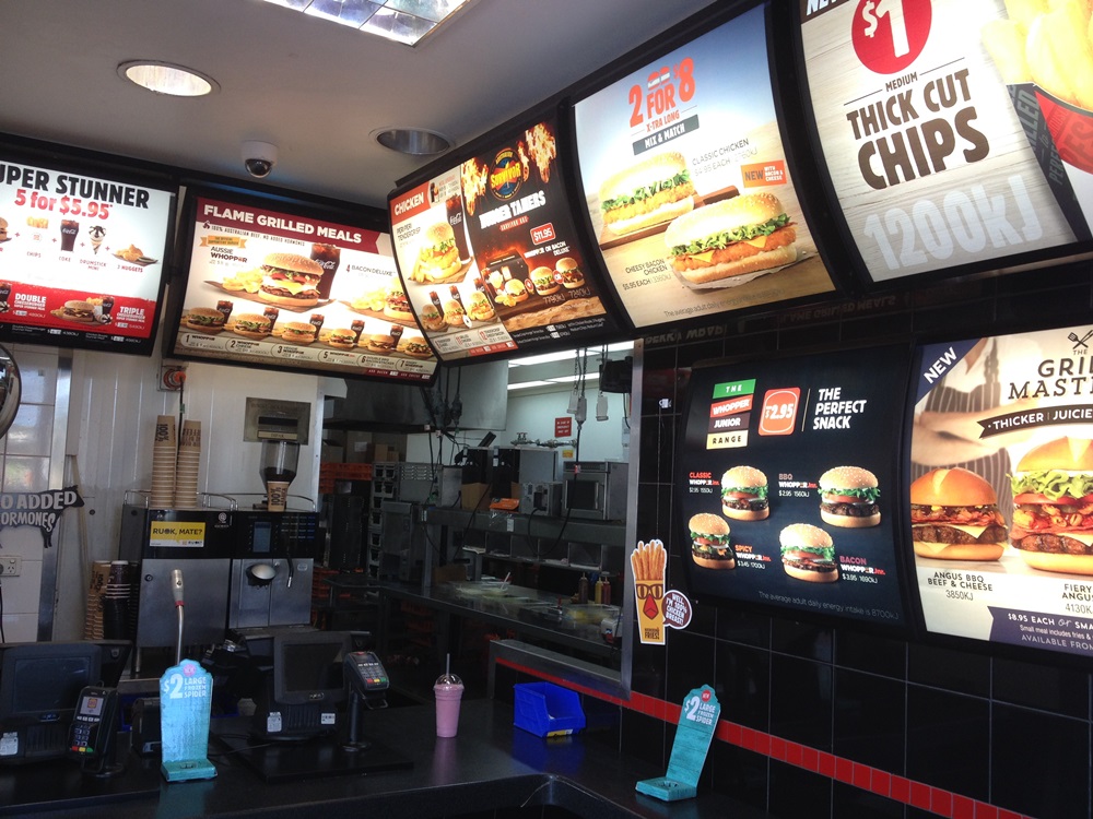 「Hungry Jacks (ハングリージャックス)」というファーストフード店に来てみました。バーガーキングと同じ会社のようで、メニューやバーガーの名前は同じだそうです