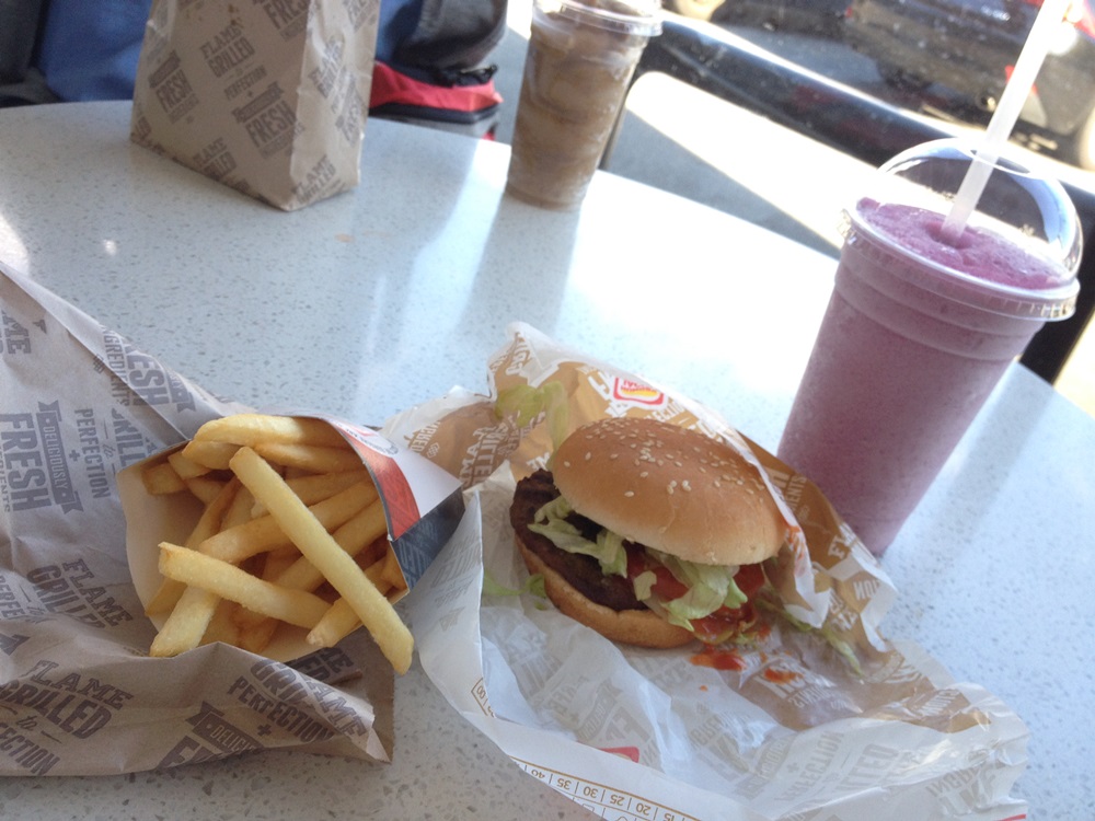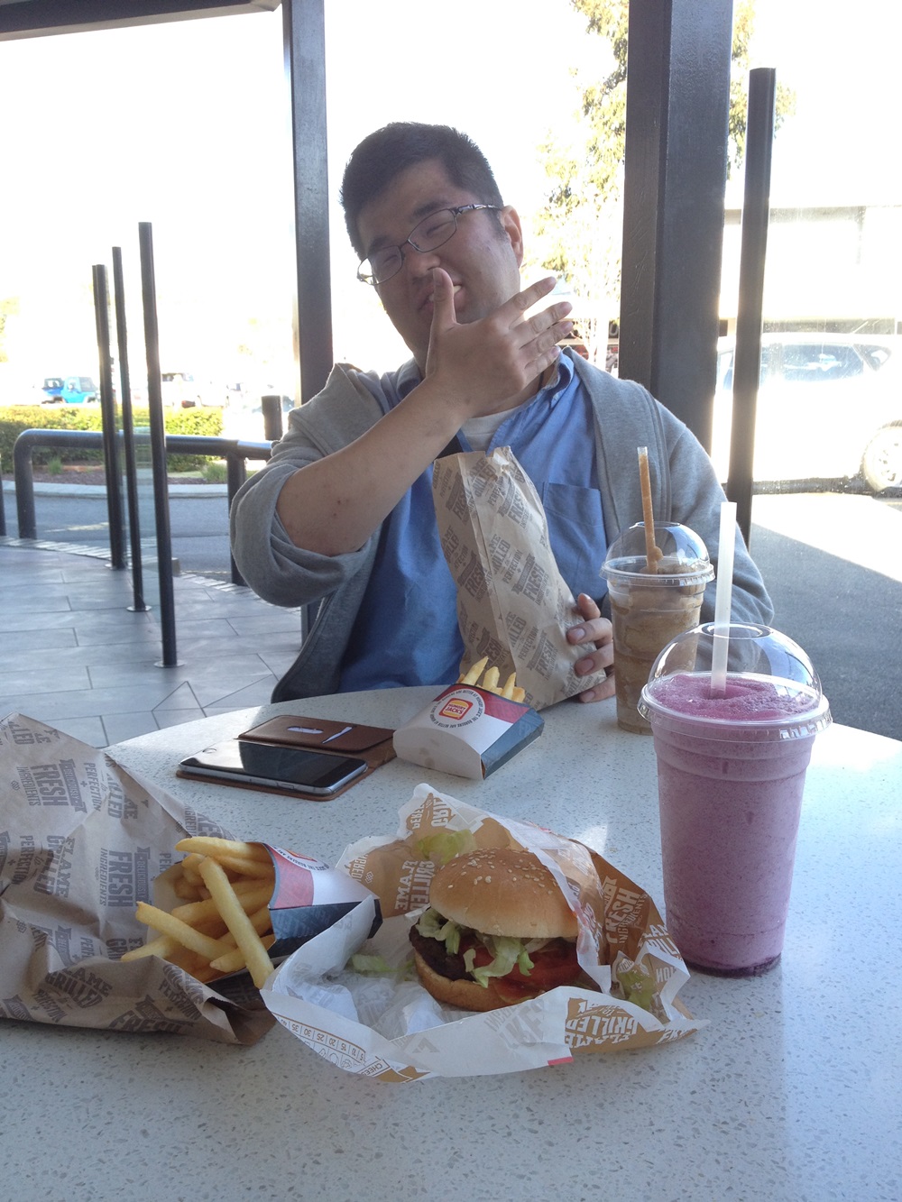 ハンバーガーは世界共通ですな!旨かった!右側のデカイスムージーがAU$1 (約80円)という安さ