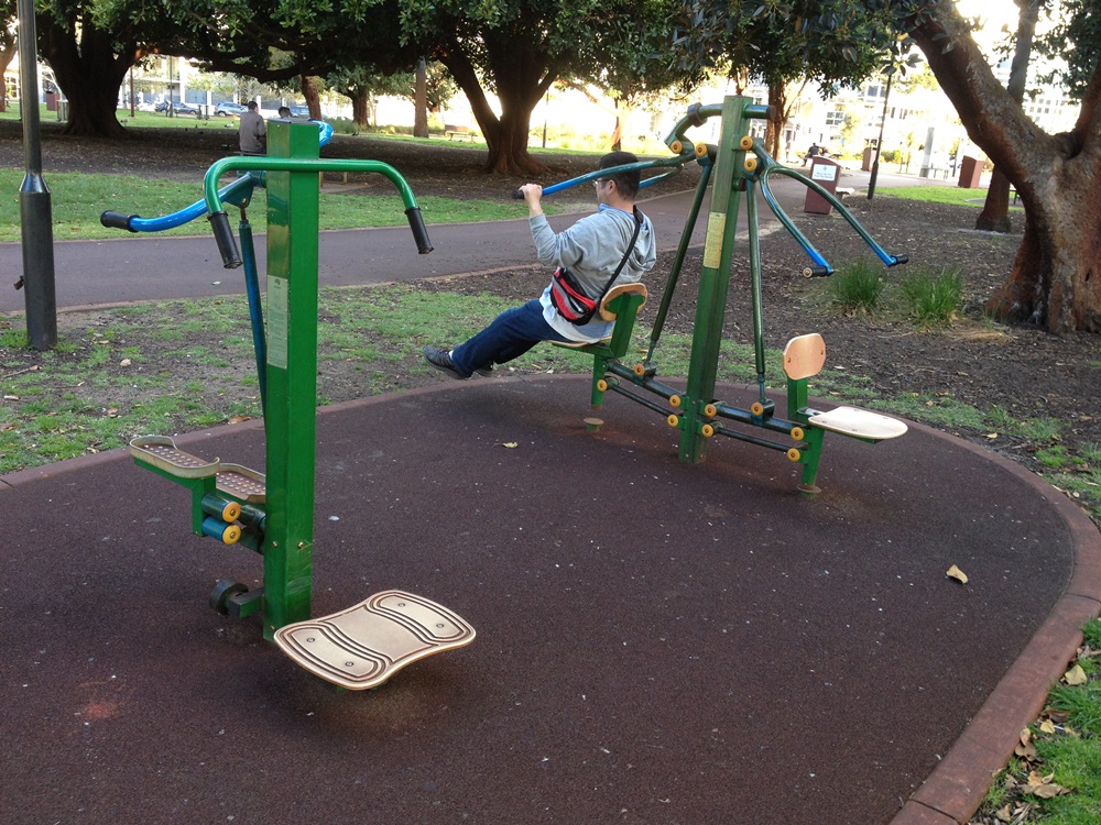 近くの公園にある健康器具での筋トレはもはや日課です。この公園、めっちゃホームレスの人達が居ますが、彼らの為に毎日食料が配られる車が来ます。色んな人に優しい国、オーストラリア