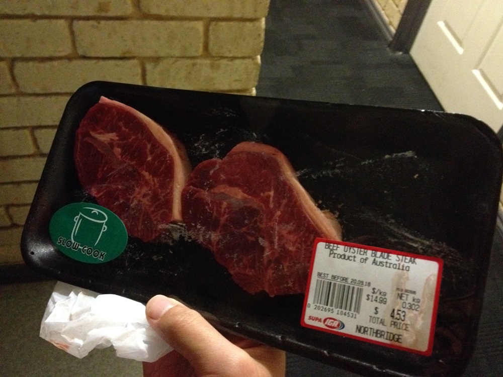 最後にオージービーフを食べられて満足じゃ!っていう写真