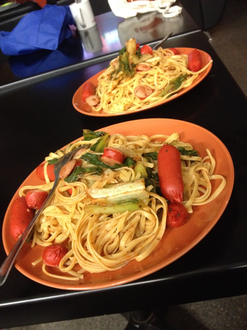 取り急ぎ、ソーセージやらレタスやらを買って作ったご飯。お腹一杯になりました