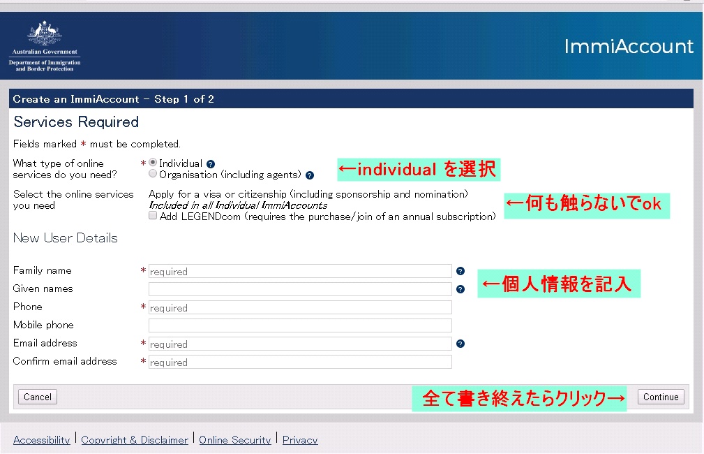 ワーホリ用のビザを申請するにあたって、まずはImmiAccountと呼ばれるビザ申請用のアカウントを作成する必要があります。
