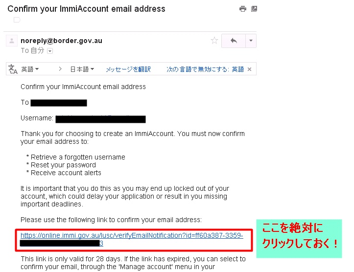 件名が「Confirm your ImmiAccount email address」の↓こういったメール。