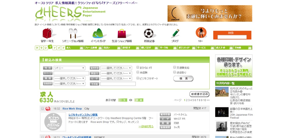 例えば「オーストラリア 仕事 クラシファイド」と検索すると、色んな求人が一覧になったサイトが出てきます。