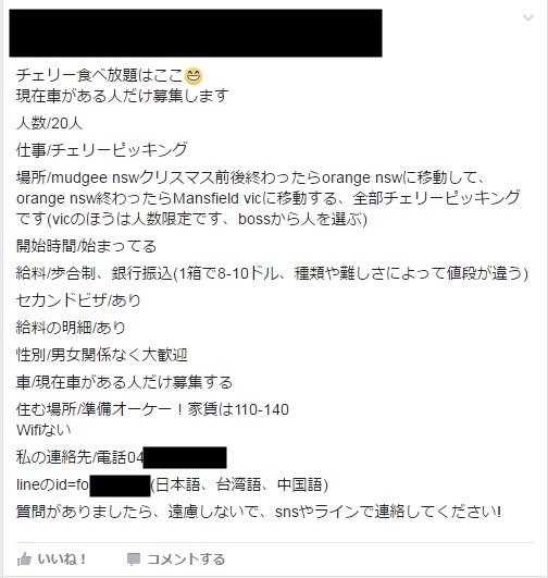 Facebook上には様々なグループページがあり、Google等で検索すればすぐにオーストラリアのファーム情報やバックパッカー用のページが出てきます。