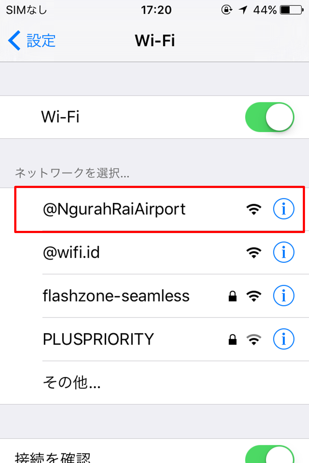 バリ国際空港のwi-fiを受信出来ていれば「@NgurahRaiAirport」というのが確認出来ます。