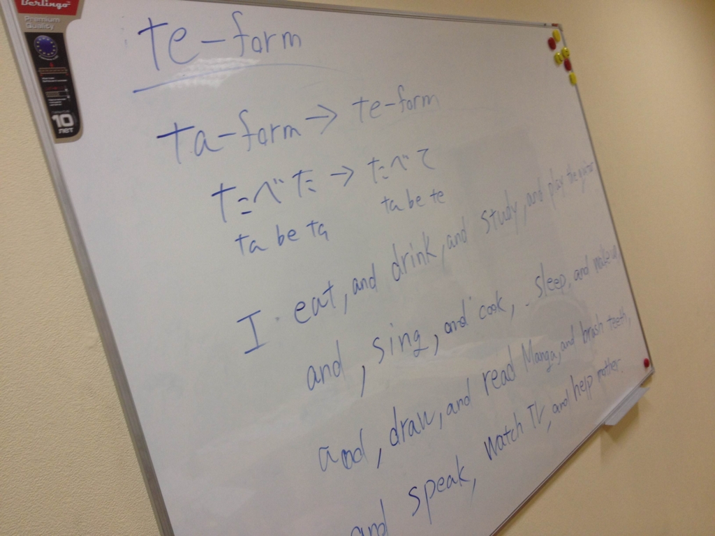 今回は生徒に一つずつ動詞を言わせて行き、”~て”を使って文章を長くしていくゲーム。