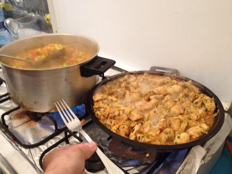 鶏肉やら野菜をぶった切って色んなスパイスで煮込んだ料理。