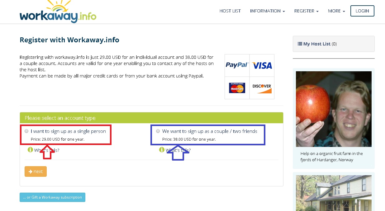 僕がパートナーと旅をしていて僕のアカウントしかない状態で「僕と僕のパートナーの2人で働きたいんですが、、、」とホストにメールを送った所、workawayから「一人用アカウントで複数人申し込んじゃダメでしょうが!めっ!ちゃんと2人用アカウントを取るかパートナー連携しなさい!」という旨のメールが来て少しの間メールが送れなくなりました。