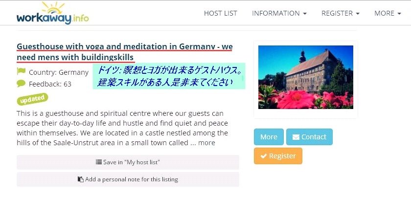 ④設備が整っている?(wi-fiの有無、泊まる部屋が個室かどうか等々、workawayのページで確認出来ます)