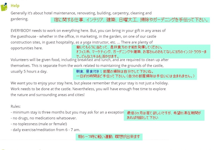 ちなみに滞在期間はホストと話し合って決める事が出来ます。2~3日だけのお手伝いも可能ですし、数ヶ月単位の滞在も勿論可能です!