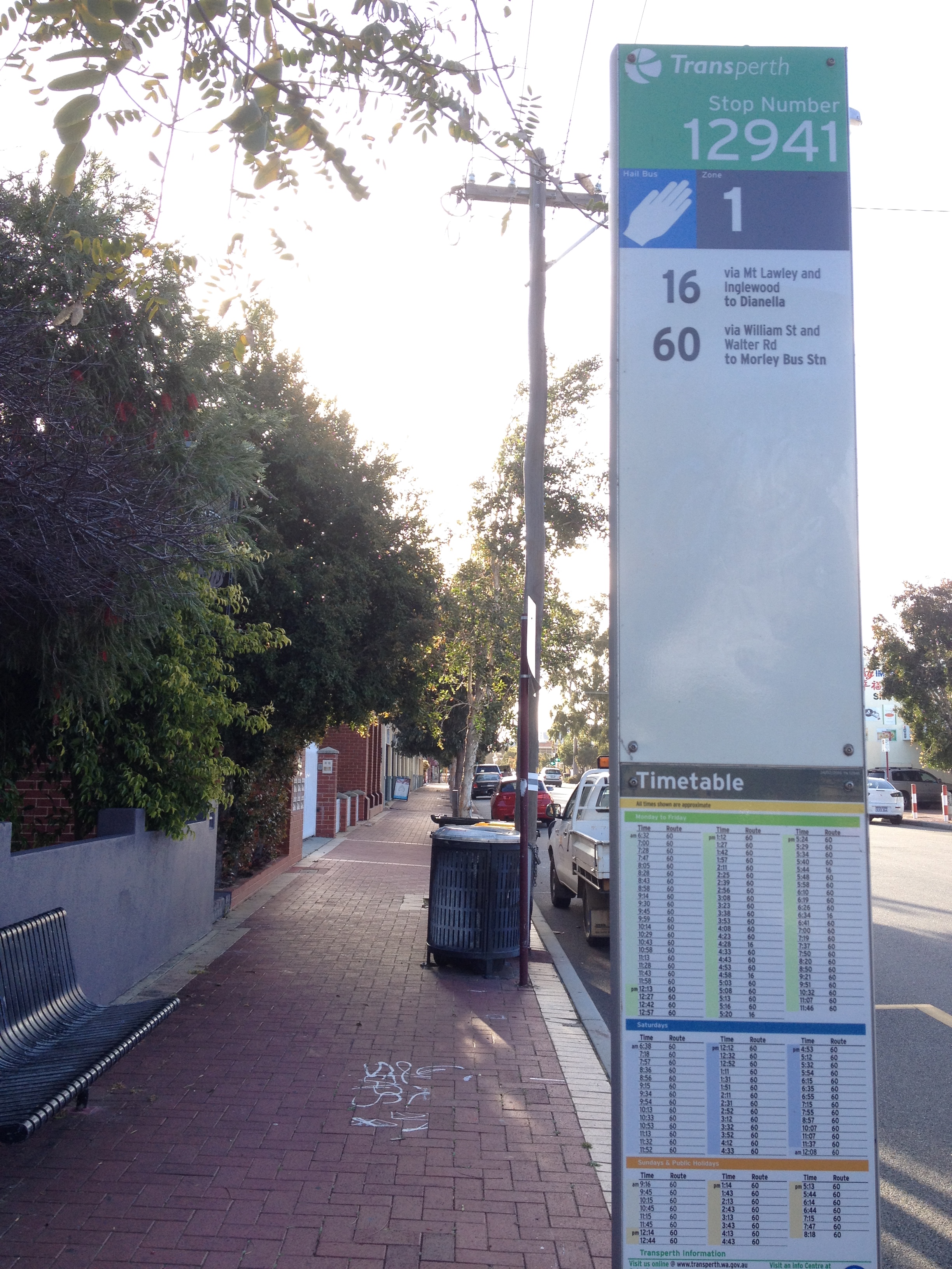 パースの空港からパース市街までは、空港出てすぐにあるバス停から380番のバスで行けます。