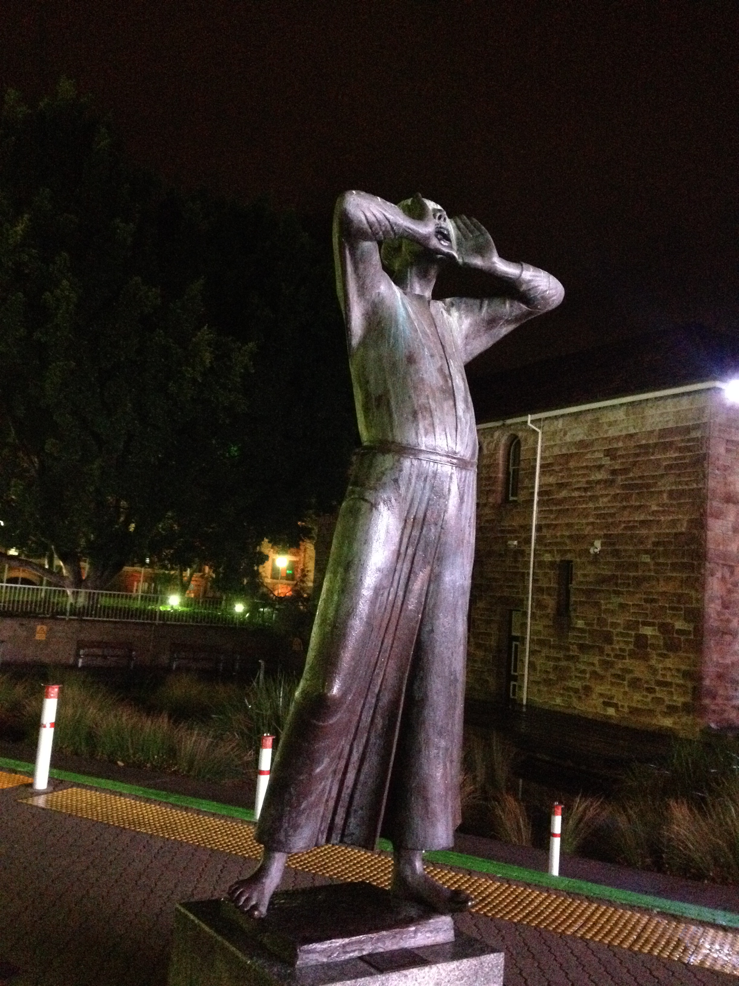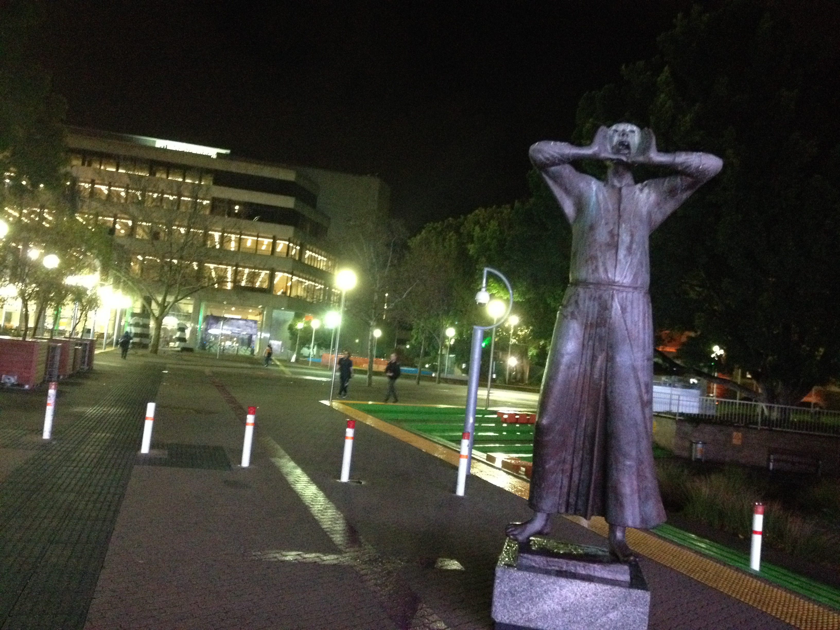 【1日目】パース到着。バス停降りてすぐにカンガルーの像があってテンション急上昇したのは内緒