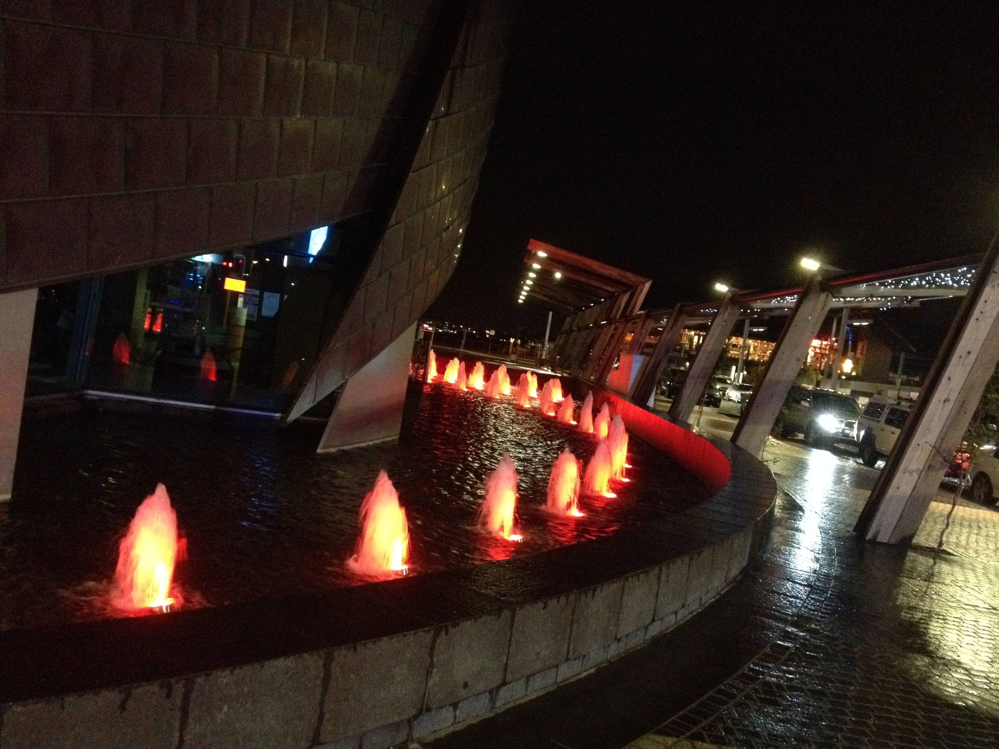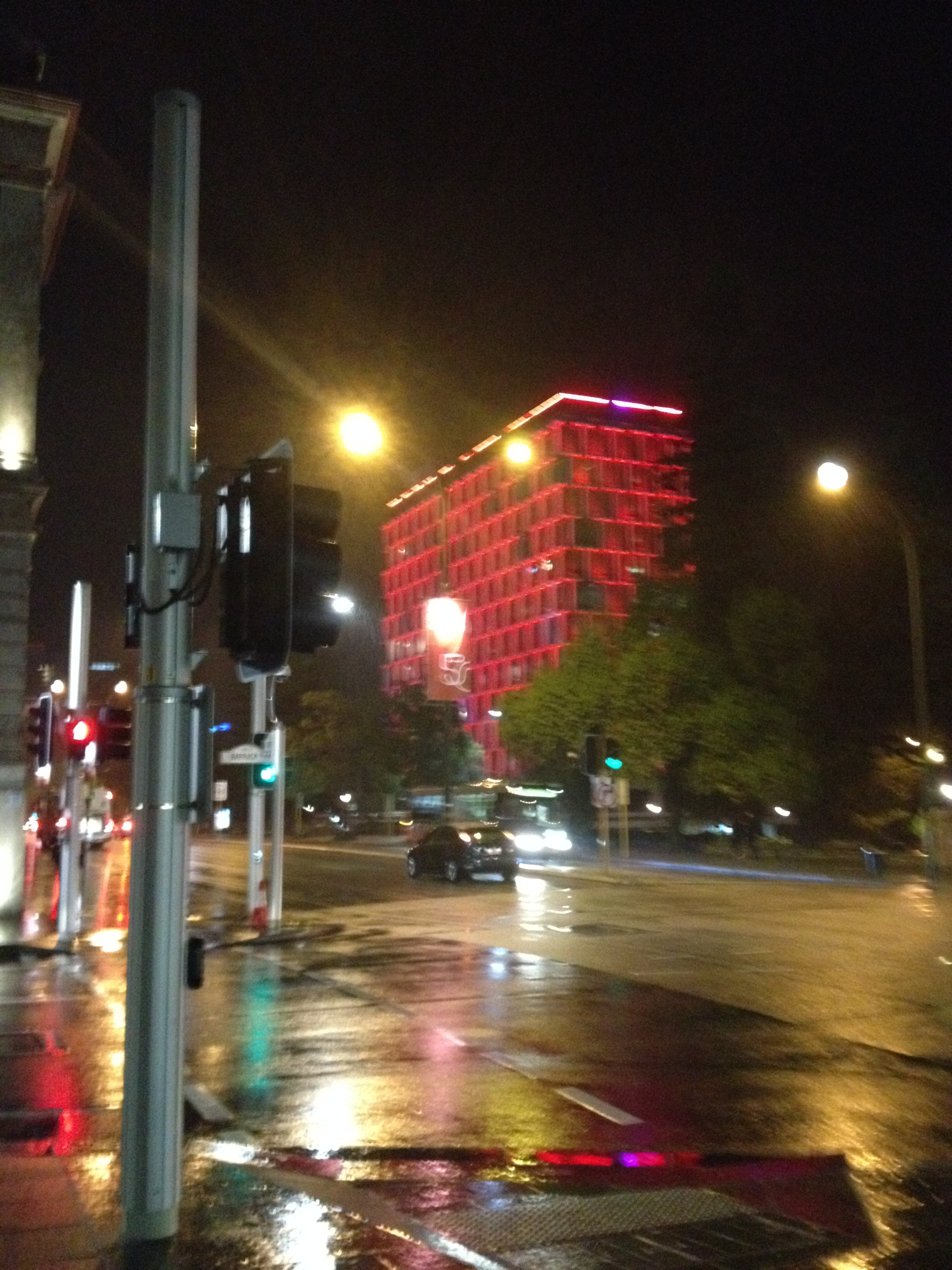 何故か分からないけど赤く光るビル。めっちゃ目立ちます