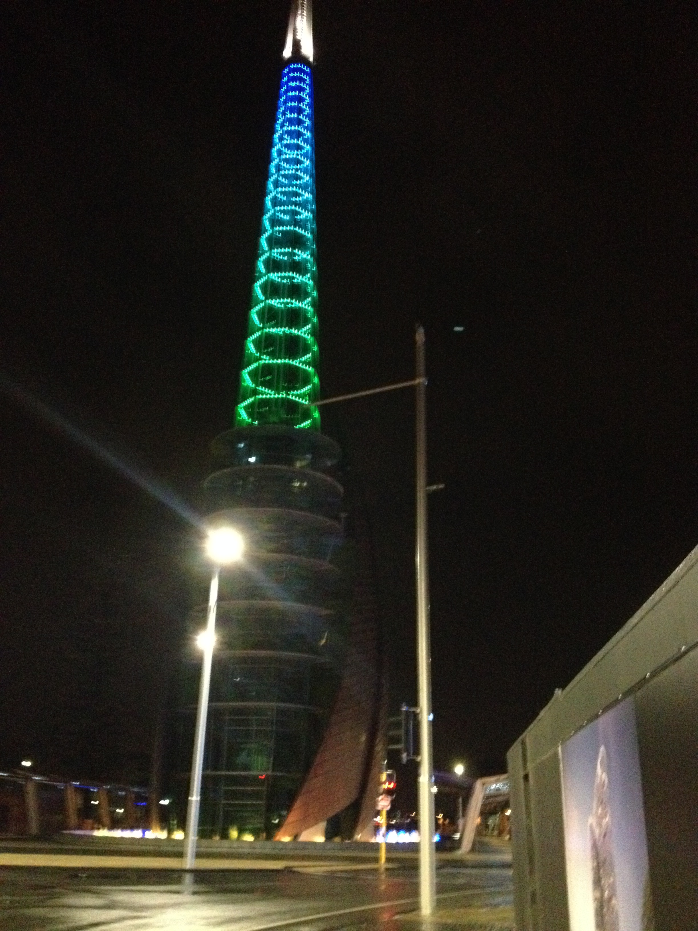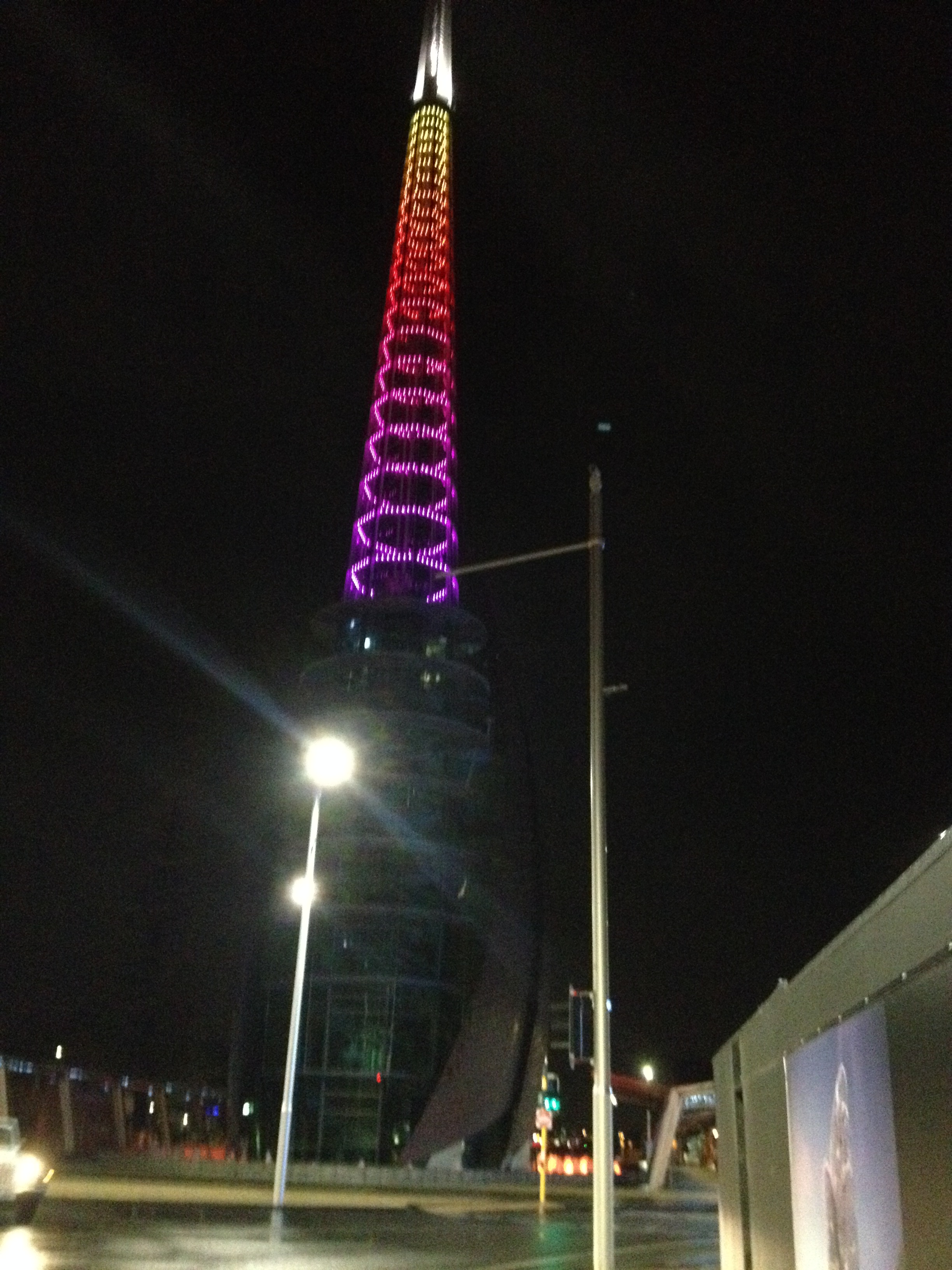 目立つと言えばこちらも。パース駅の近くにそびえ立つ塔。テレビ塔か何かかなぁ